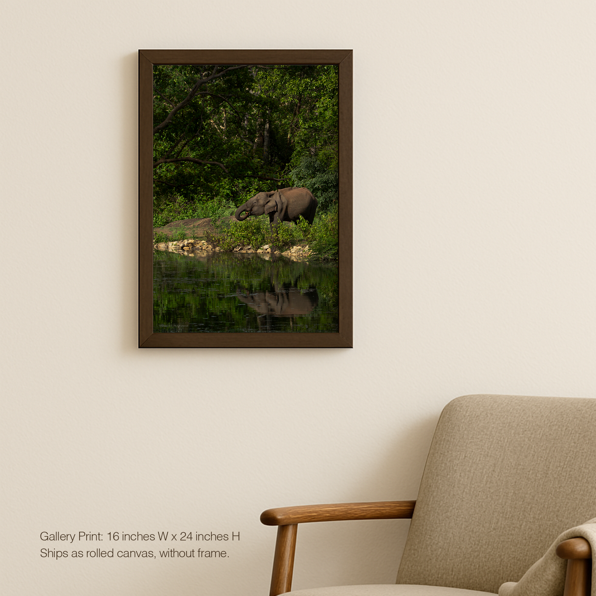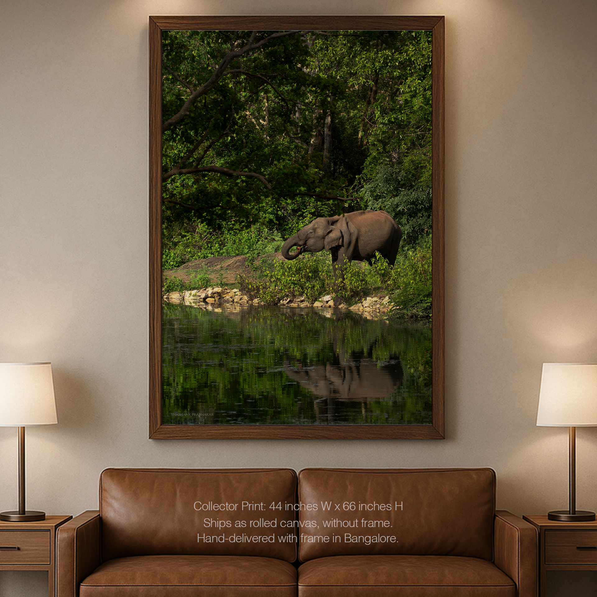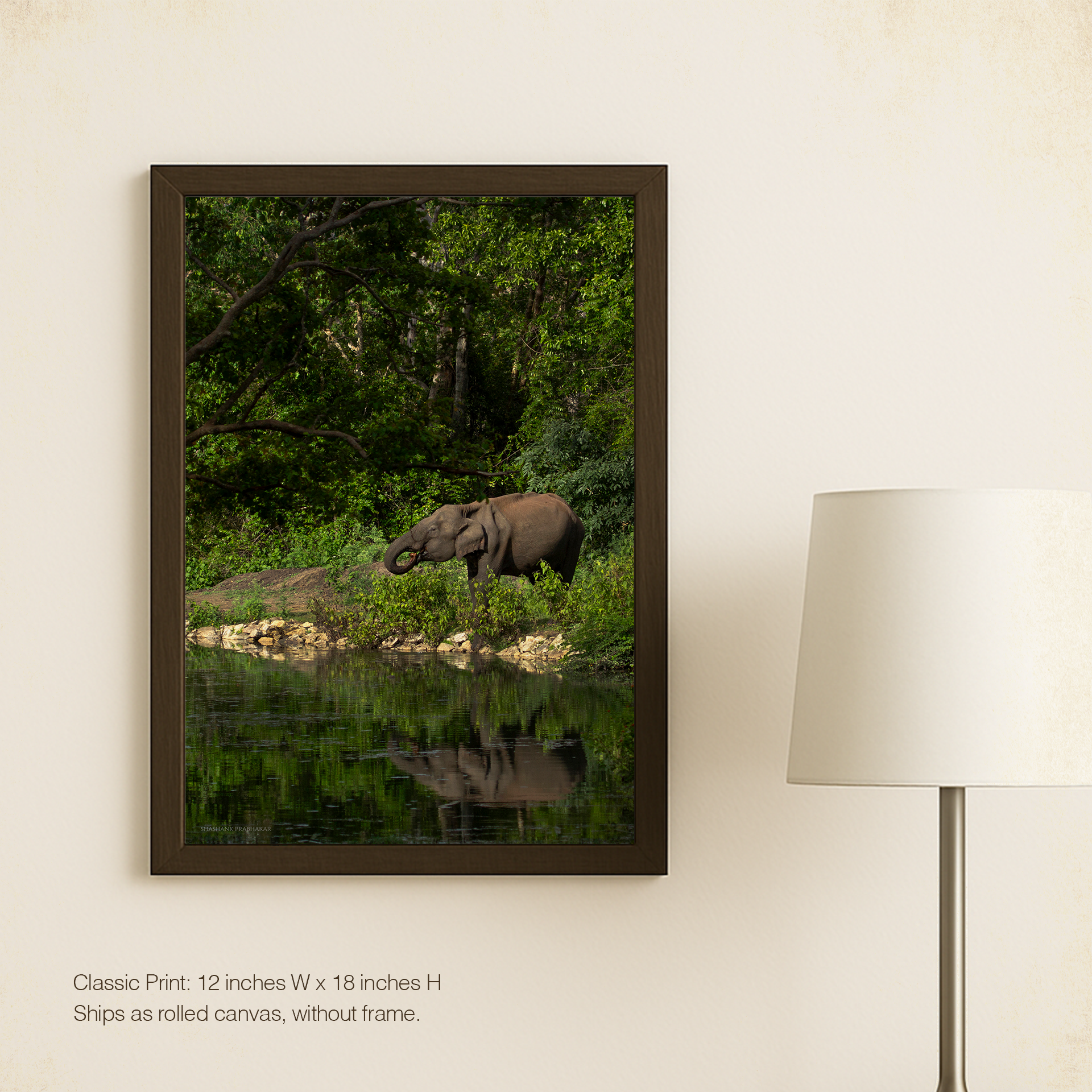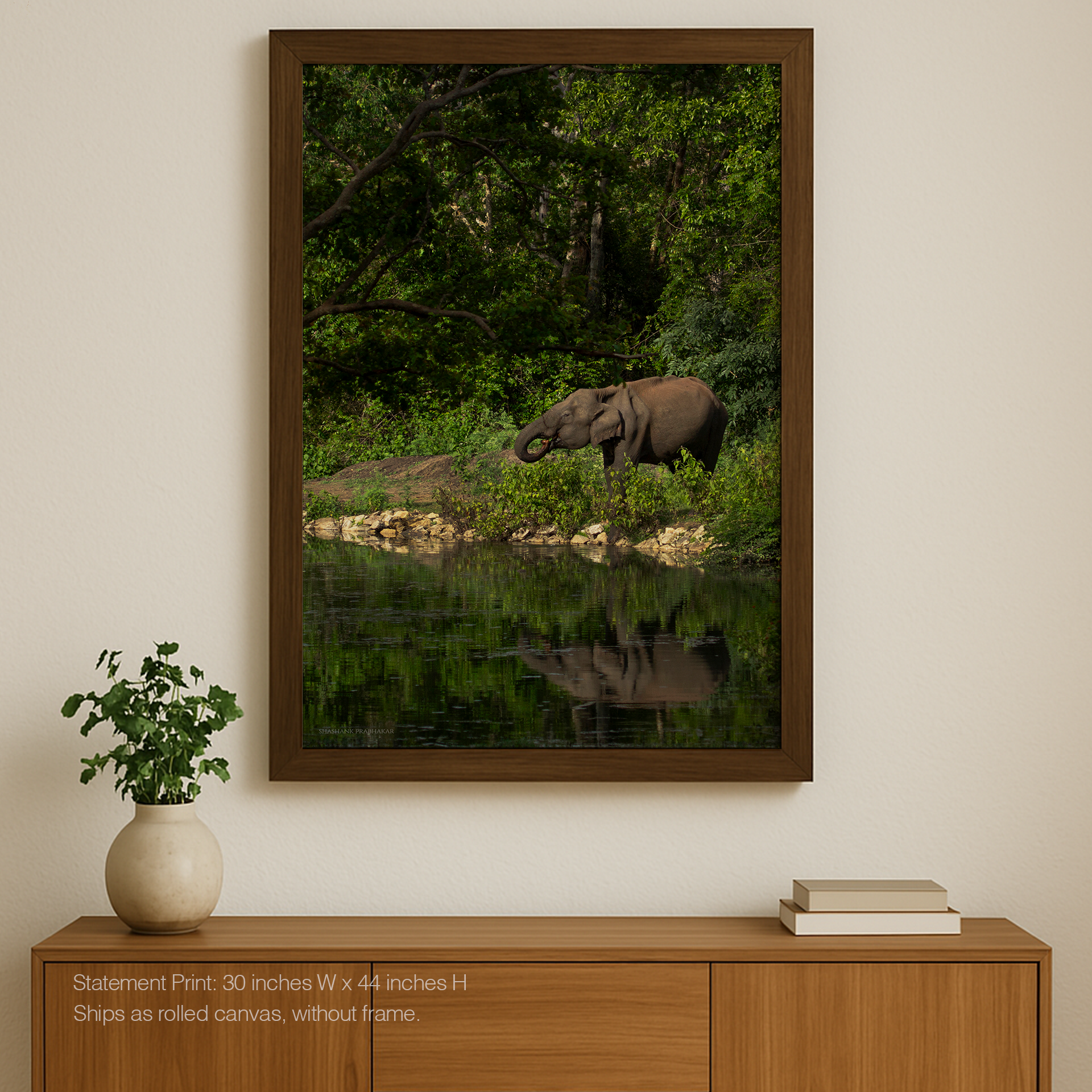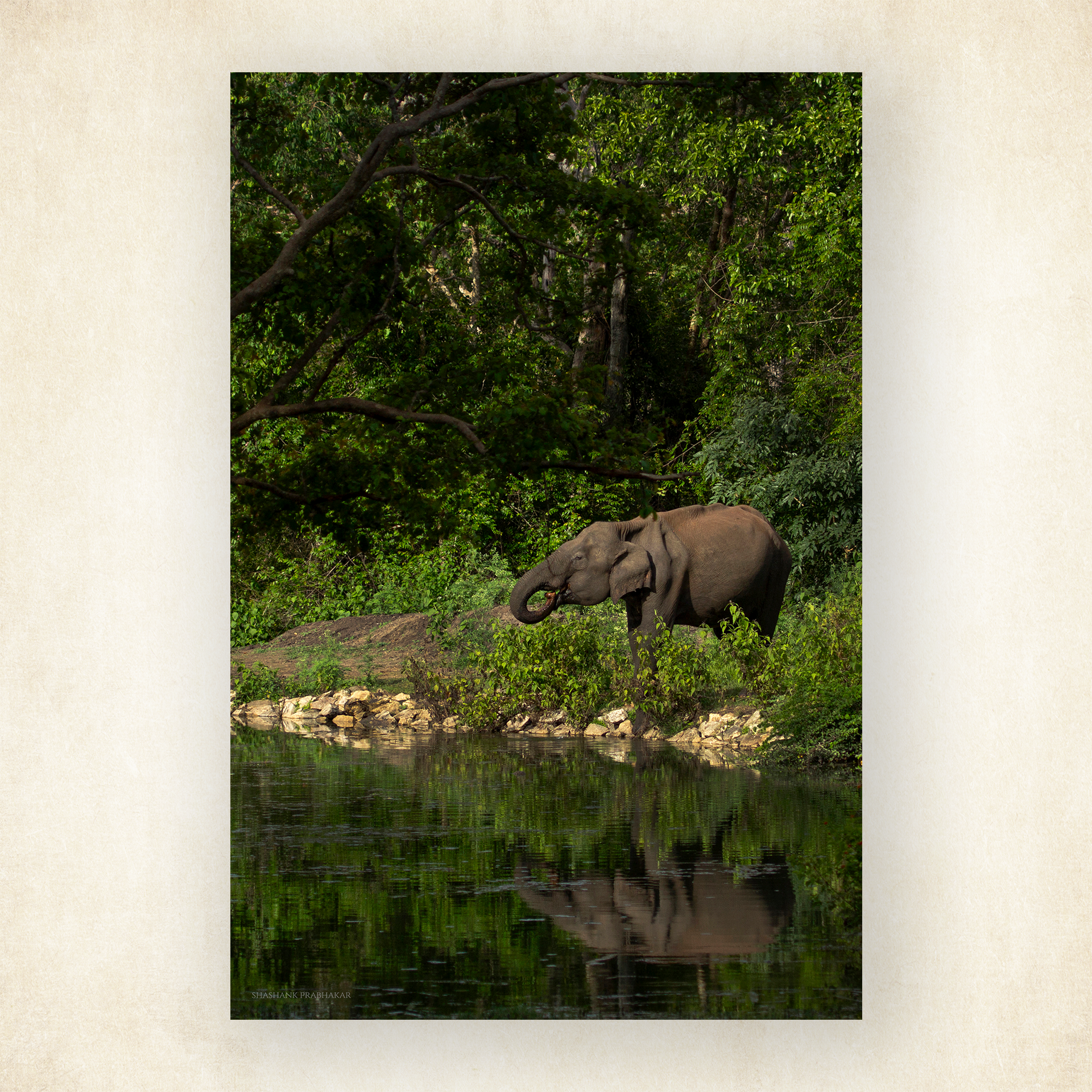 This photograph invites a deeper appreciation of the delicate balance between wildlife and habitat - highlighting the importance of waterholes for survival in Kabini’s forests. Available in multiple print sizes, "Gentle Giant" is a beautiful reminder of nature’s tranquility and resilience, perfect for bringing a touch of Indian wilderness to your living or work space.