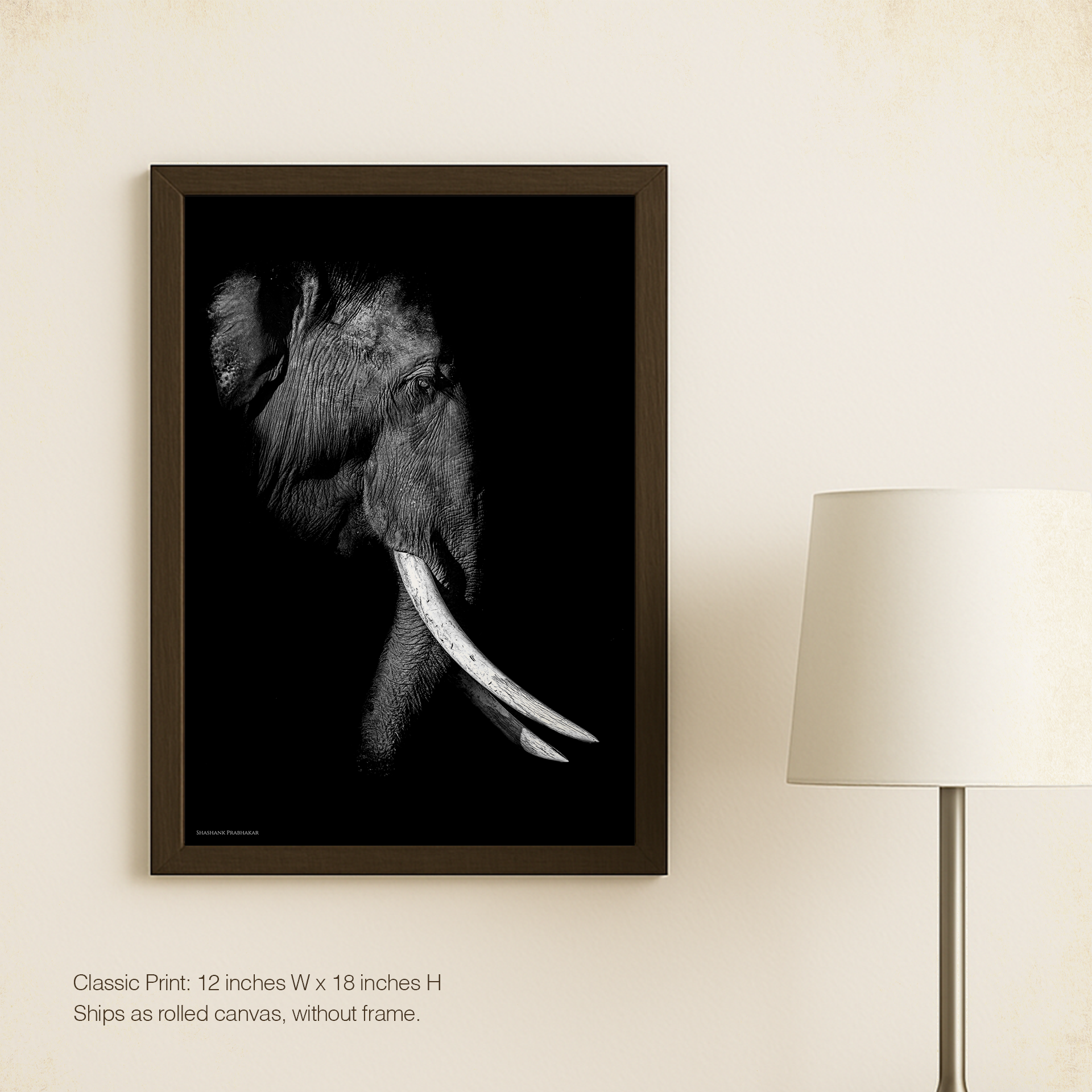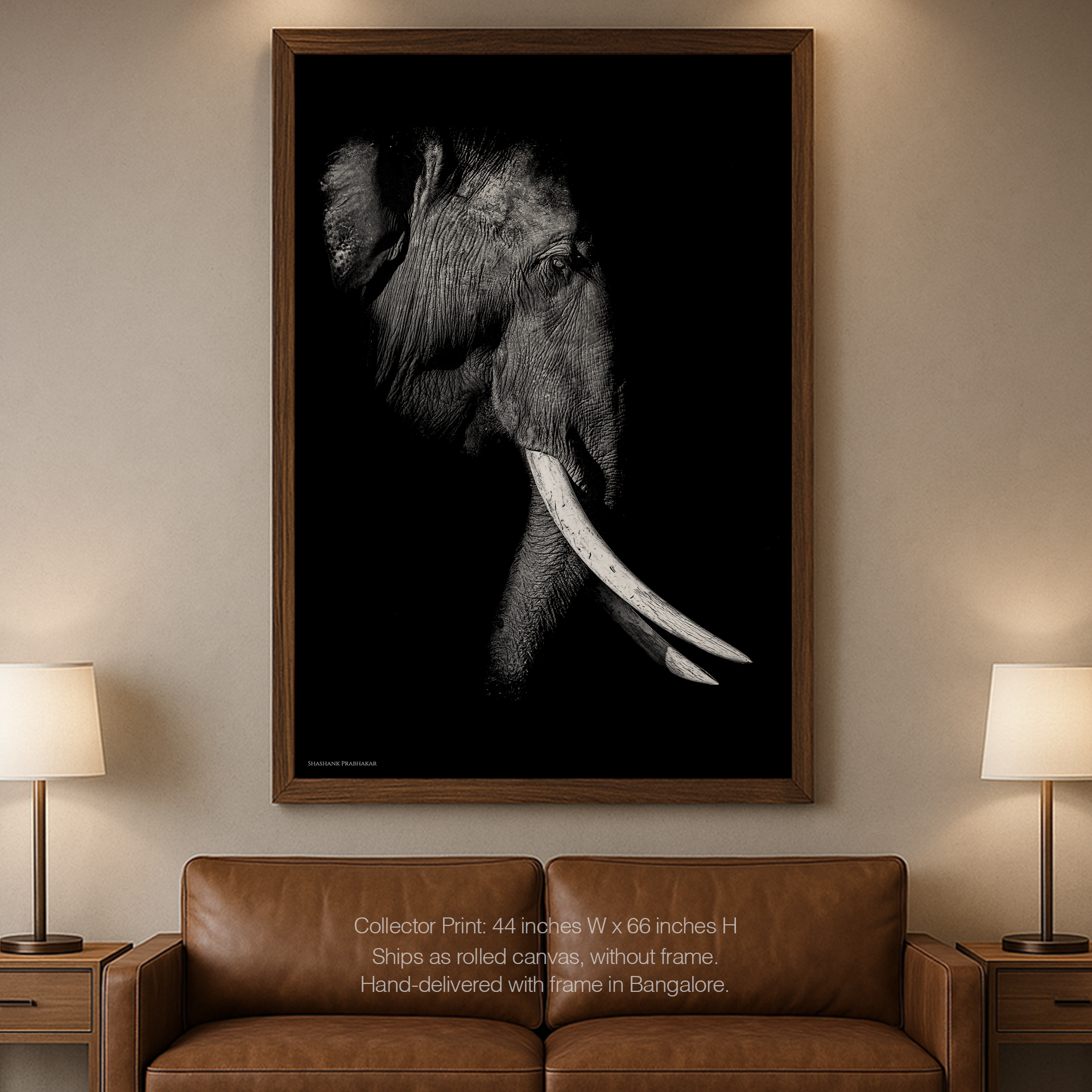 This image distills the spirit of Bandipur’s revered giants: strong, enduring, and enigmatic. "Great presence" is available in a range of print sizes, inviting you to bring the awe and reverence of India’s wildest landscapes, the stories, strength, and legacy of the elephant, into your own space.