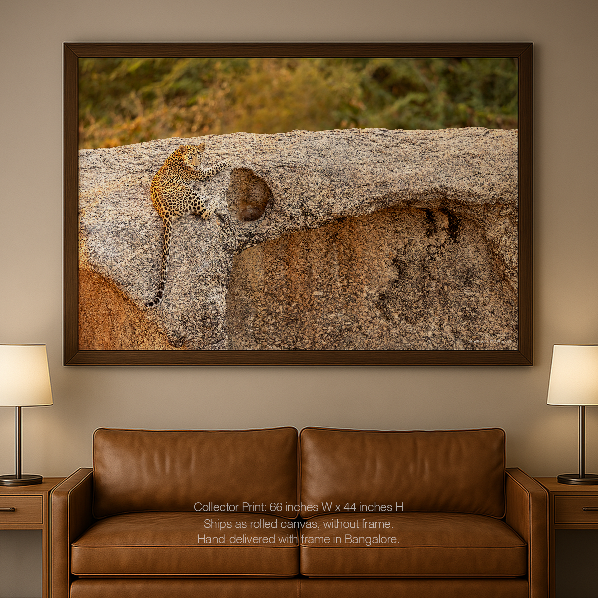 Printed on Hahnemühle Daguerre canvas, the textures of rock, fur, and light come alive across formats. From a desk print that keeps the wild close to a collector’s piece that commands attention, this photograph holds meaning and presence at every scale.