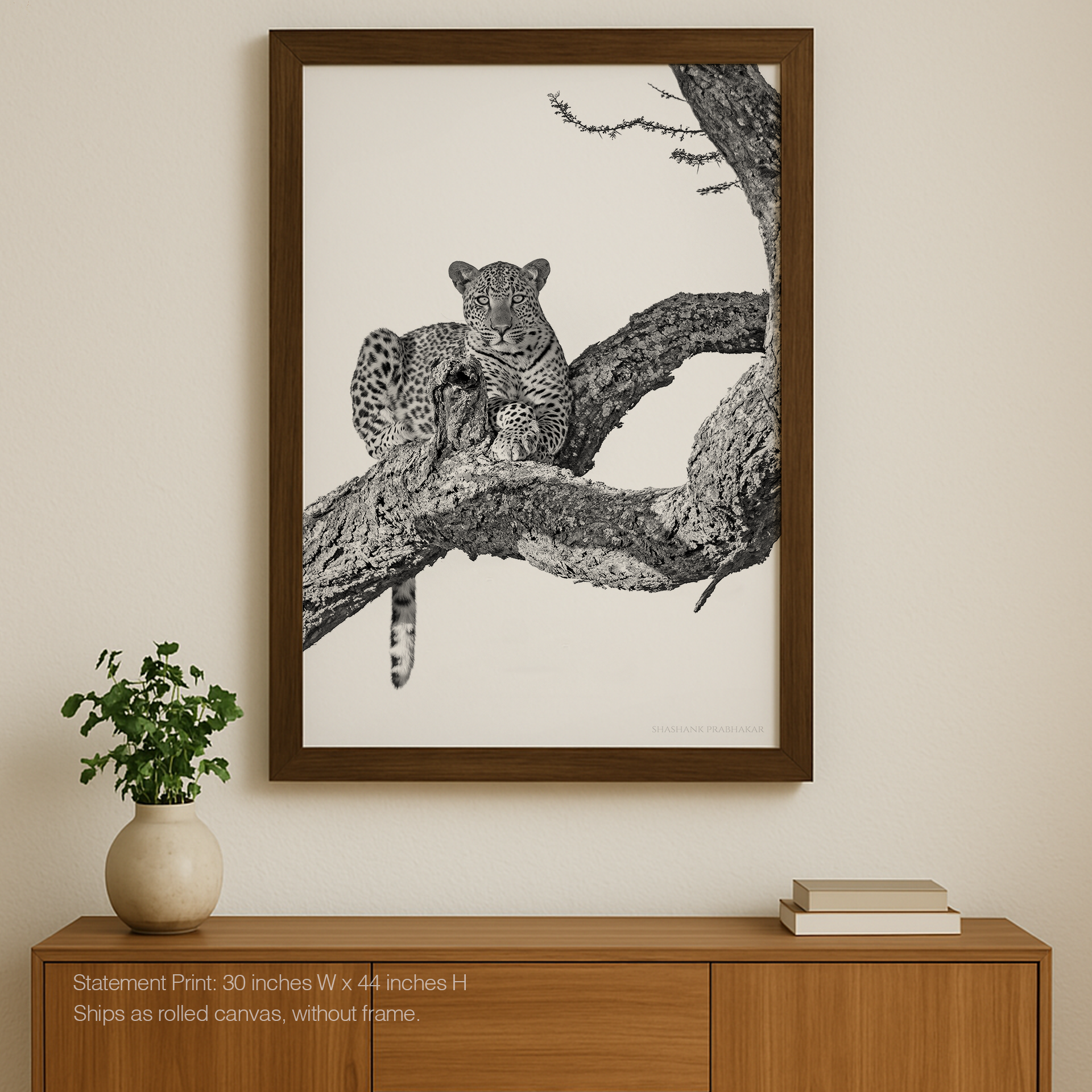Every detail comes to life in contrast. Whether adorning a compact space or standing boldly on a feature wall, this print brings the raw elegance of the wild right into your room.
